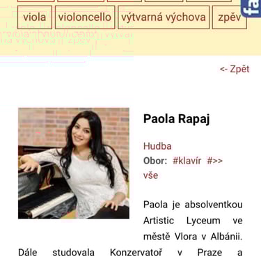 Paola Rrapaj the head of the Charles University's Student Jury for the Music Olympiad of Czech Republic 2019-2021